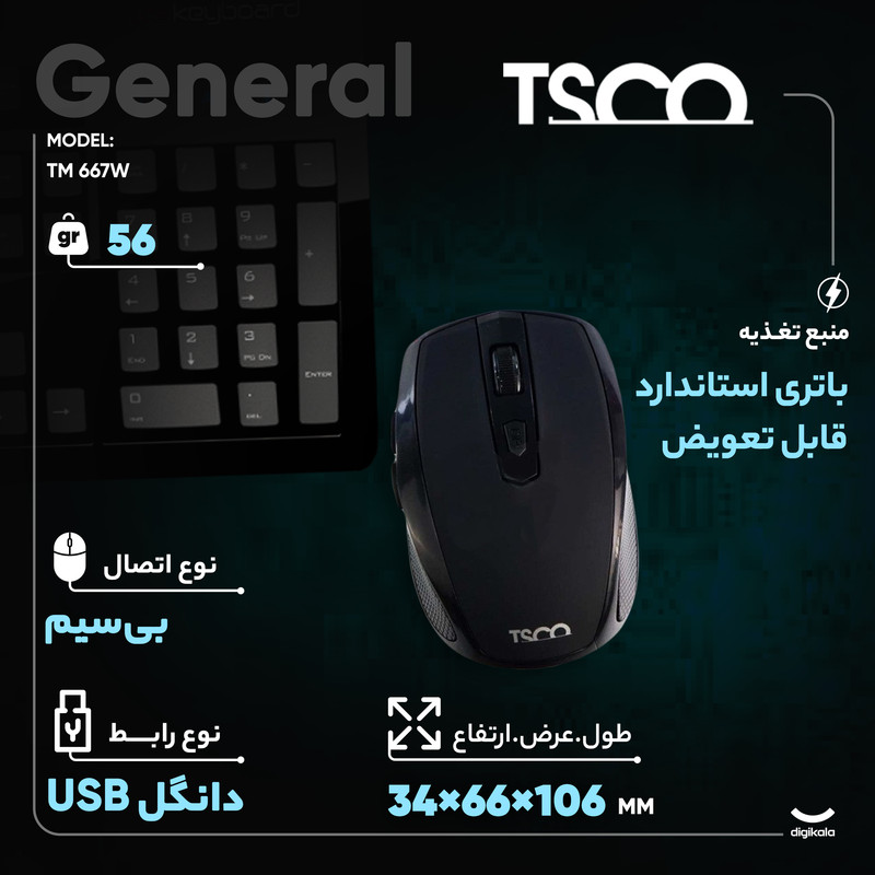 نقد و بررسی تخصصیماوس بی سیم تسکو مدل TM 667W