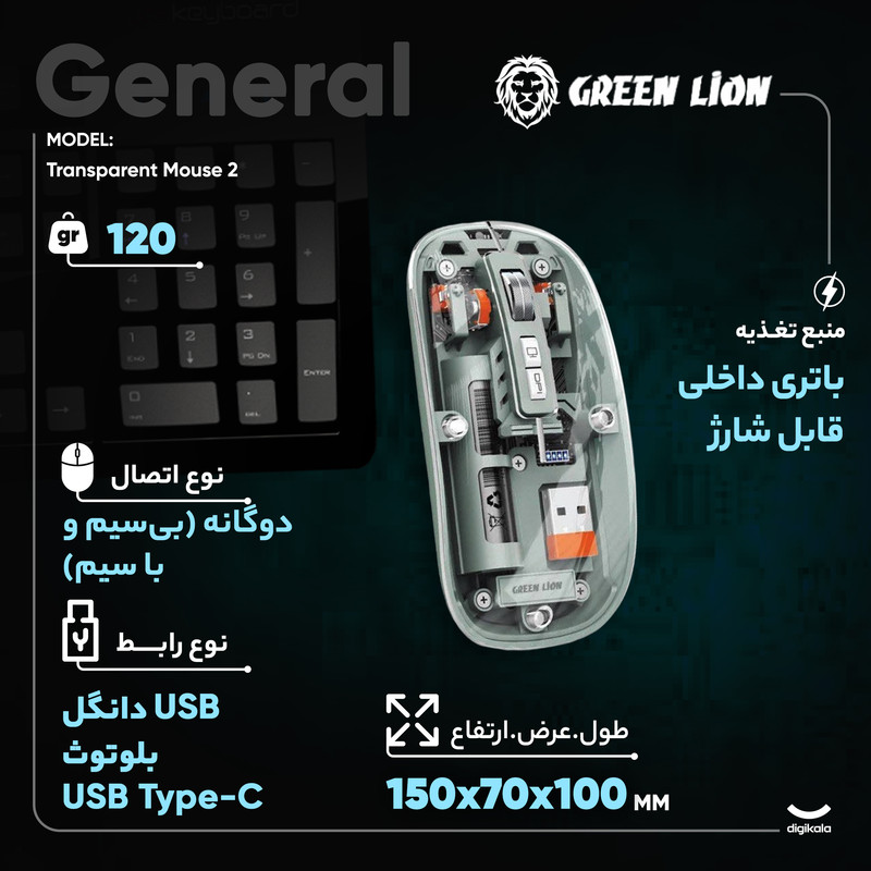 ماوسها در دنیای فناوری امروزی به عنوان یکی از ابزارهای ورودی مهم برای کار با رایانهها و لپتاپها شناخته میشوند. با پیشرفت فناوری بیسیم، ماوسهای بیسیم نیز استفاده گستردهای پیدا کزده اند. ماوس بیسیم گرین لاین مدل transparent mouse 2 با طراحی زیبا و کاربردی، به عنوان یک ابزار قابل اعتماد در کاربردهای روزانه و تخصصی استفاده میشود. ماوس شفاف Green Lion یک دستگاه منحصر به فرد و شیک است که امکانات مختلفی را برای بهبود تجربه کار با کامپیوتر برای شما فراهم می کند، این ماوس با عمر کلیک 3 میلیون بار و وضوح 1600 DPI ، کنترل دقیق مکان نما را برای شما فراهم می کند. باتری قدرتمند 500mAh استفاده طولانی مدت را بدون نیاز به شارژ و یا تعویض باطری تامین می کند و طراحی شفاف و زیبای آن، زیبایی را به دفتر شما اضافه می کند. با قابلیت اتصال به سه دستگاه به طور همزمان ، این ماوس نیاز شما را برای اتصال به لپ تاپ ، تبلت و یا تلفن همراه، برآورده می کند.