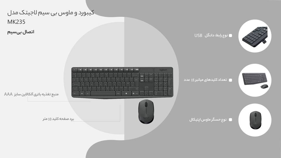 کیبورد و ماوس بیسیم لاجیتک مدل MK235، یک مجموعة ایدهآل برای کاربران عمومی و اداری است که به دنبال یک ترکیب مقرونبهصرفه و باکیفیت هستند. این مجموعه با ویژگیهای متنوع و کاربری آسان، توجه بسیاری از کاربران را به خود جلب کرده است.