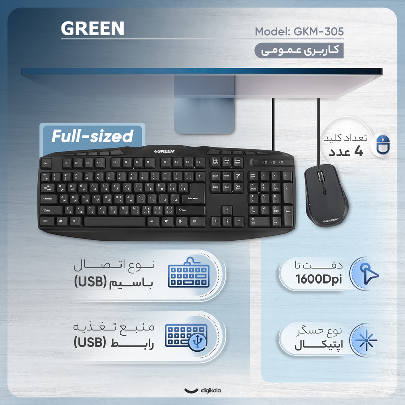 کیبورد و ماوس گرین مدل GKM-305 با حروف فارسی